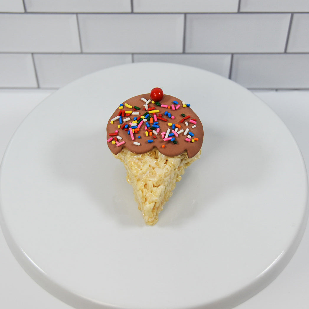 Ice Cream Cone Rice Crispie Treats come decorated with fondant and sprinkles.